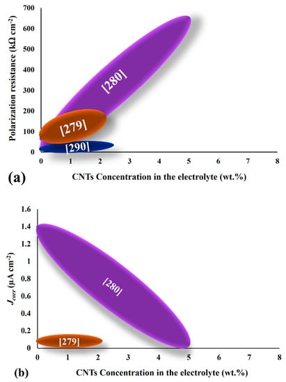 | Coating Type | Studied Variable | Medium | Highest Ecorr (V) | Lowest jcorr (µA cm−2) | Highest Rp (Ω) | Highest Rcoat (Ω cm2) | Ref. |