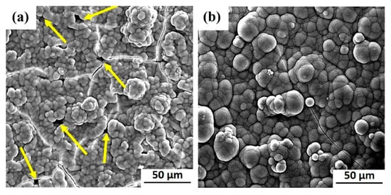 - Changes in uniformity of the coating. During the early stages the electrodeposited layer may not completely cover the substrate surface. It may take an extended period to form a homogenous film on the substrate. This may also cause an enlargement in the size of the generated needle-like or plate-like particles. The prolonged deposition time gives rise to the possibility of pore formation throughout the microstructure of the layer [25,102,113,157,159].