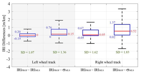 - The differences observed were probably due to the dynamic response of the profilometer. The acquisition speed was variable (from 30 to 60 km/h), and thus large variations in acceleration probably led to errors in the measurement of the profiles and therefore in the computation of IRI [16].