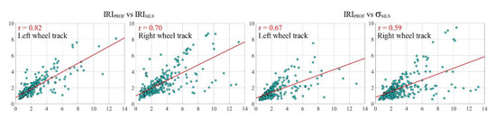 | Segment | Length (m) | Mean IRIPROF | Mean IRIMLS | Δ (%) | Mean σMLS | Δ (%) |