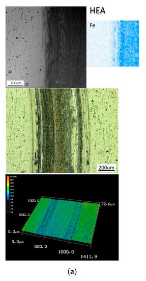 - Yu, Y.; He, F.; Qiao, Z.; Wang, Z.; Liu, W.; Yang, J. Effects of temperature and microstructure on the triblogical properties of CoCrFeNiNbx eutectic high entropy alloys. J. Alloys Compd. 2019, 775, 1376–1385. [Google Scholar] [CrossRef]