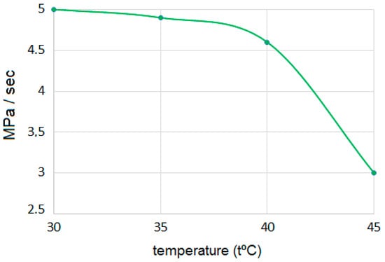 As seen in Figure 8, at a deposition temperature of 30 °C, the rate of detachment of the coating from the sample surface was 3.17 MPa/s. With a further increase in the deposition temperature, the adhesive strength of the coating was reduced. Consequently, the optimum deposition temperature at which the most durable coatings were formed was 30 °C.