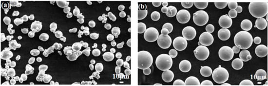 SEM images of feedstock powders (a) commercially pure-Al, and (b) commercially pure-Ti powders.