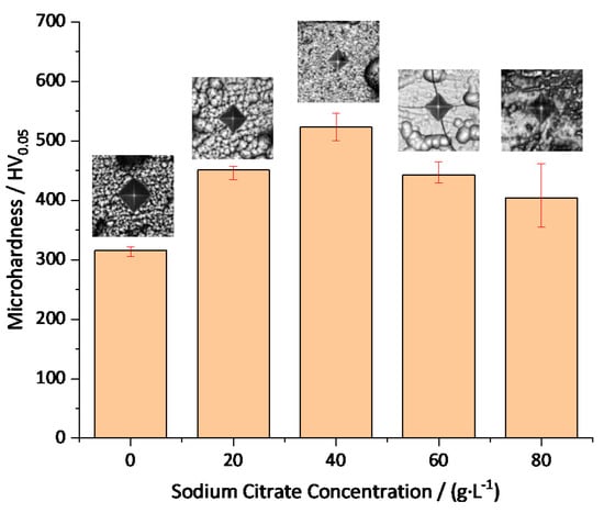Effect of sodium citrate concentration on the microhardness of coatings.