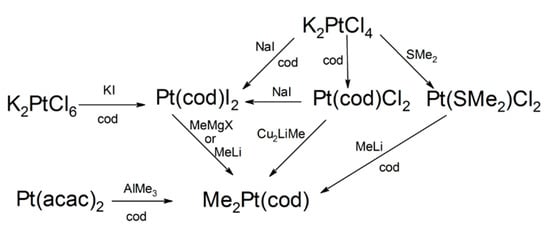 - Lee, S.S.; Lee, H.; Park, M.; An, K.; Kim, J.; Lee, J.; Chung, T.; Kim, C.G. Synthesis of novel platinum precursor and its application to metal organic chemical vapor deposition of platinum thin films. Bull. Korean Chem. Soc. 2008, 29, 1491–1494. [Google Scholar] [CrossRef][Green Version]