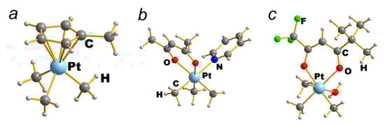 - Zharkova, G.I.; Baidina, I.; Turgambaeva, A.; Romanenko, G.V.; Igumenov, I. Volatile fluorinated trimethylplatinum(IV) β-diketonates: Synthesis, properties, and structure. Polyhedron 2012, 40, 40–45. [Google Scholar] [CrossRef]