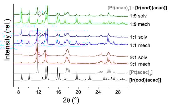 - Bonegardt, D.V.; Il’In, I.Y.; Sukhikh, T.S.; Morozova, N.B. Crystal structure and properties of (1,5-cyclooctadiene) (η5-pentamethylcyclopentadienyl) iridium(I) [Ir(cod)Cp*]. J. Struct. Chem. 2017, 58, 983–988. [Google Scholar] [CrossRef]