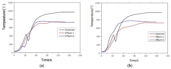 Thermal barrier effect of Yb2O3-Gd2O3 co-doped YSZ coatings with different thickness: (a) 270 μm coatings, (b) 480 μm coatings.