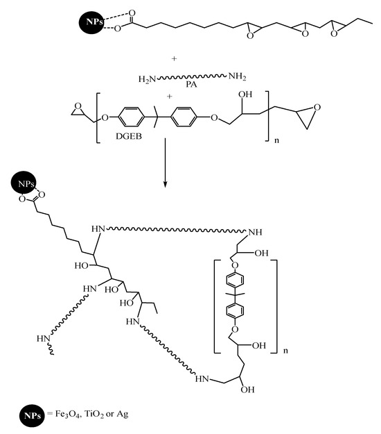 Curing mechanism of DGEB/PA in the presence of hydrophobic modified NPs.