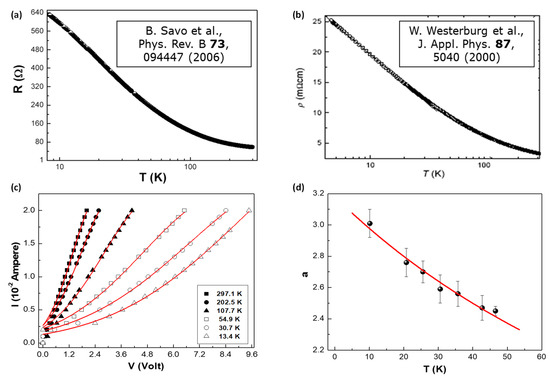 - de Andrés, A.; García-Hernández, M.; Martínez, J.L. Conduction channels and magnetoresistance in polycrystalline manganites. Phys. Rev. B 1999, 60, 7328–7334. [Google Scholar] [CrossRef]