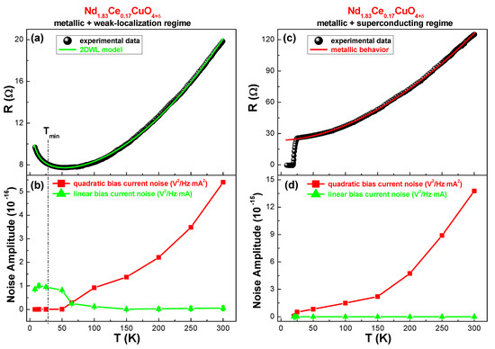 - Barone, C.; Guarino, A.; Nigro, A.; Romano, A.; Pagano, S. Weak localization and 1/f noise in Nd1.83Ce0.17CuO4+δ thin films. Phys. Rev. B Condens. Matter Mater. Phys. 2009, 80, 224405. [Google Scholar] [CrossRef]