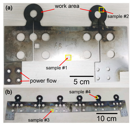 The tested specimens were heating plates taken from a packaging production line, as displayed in