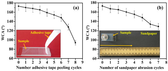 - Pawar, P.G.; Xing, R.; Kambale, R.C.; Kumar, A.M.; Liu, S.; Latthe, S.S. Polystyrene assisted superhydrophobic silica coatings with surface protection and self-cleaning approach. Prog. Org. Coat. 2017, 105, 235–244. [Google Scholar] [CrossRef]
