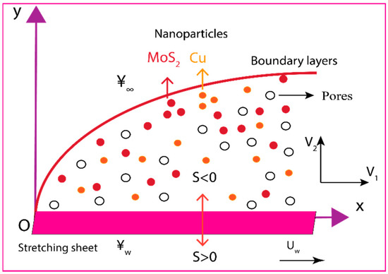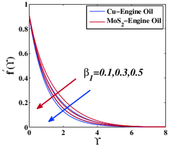 - The velocity of molybdenum disulfide engine oil (MoS2–EO) nanofluid was found to be higher than copper engine oil (Cu–EO) nanofluid. This comparison was depicted under the impact of the Deborah number, porous media parameter, nanoparticle volume fraction parameter, velocity slip parameter, suction, and injection.