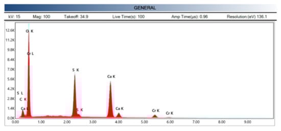 A general analysis with a Sigma 300 VP scanning micrograph and a vacuum using the energy-dispersive X-ray technique indicated the following chemical compositions, as reflected in the attached figures. For analysis, the samples were chromium-coated.