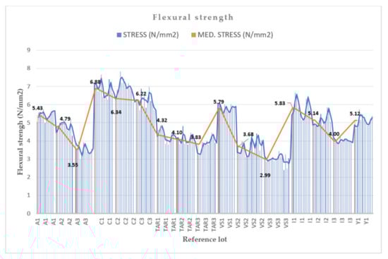 In general, different flexural strength ranges are achieved in the tests compared to the results obtained by Prakaypun and Jinawath [9], with our results being below 6 N/mm2.