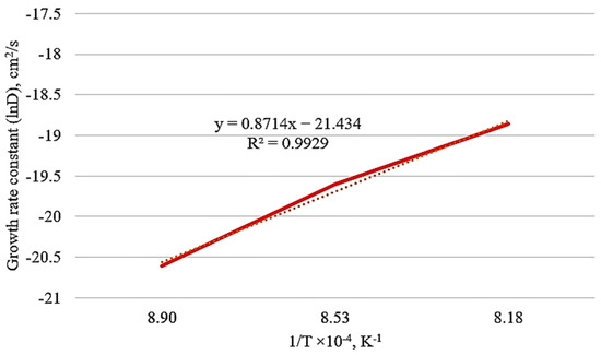 Growth rate constant (lnD) versus 1/T of borided HMS.