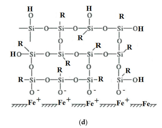 - Nazarov, A.P.; Stratmann, M. Adsorption of methoxysilanes on an iron surface and behaviour of formed surfaces in a corrosive environments. Prot. Met. 1994, 30, 52–58. [Google Scholar]