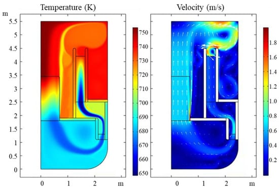 Flow field and temperature field of a typical LBE reactor section.