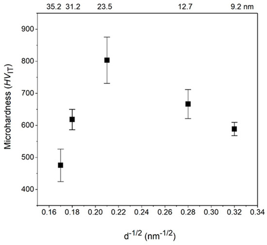 - Naik, S.N.; Walley, S.M. The Hall–Petch and inverse Hall–Petch relations and the hardness of nanocrystalline metals. J. Mater. Sci. 2019, 55, 2661–2681. [Google Scholar] [CrossRef] [Green Version]