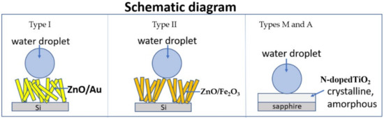 - Shirolkar, M.M.; Phase, D.; Sathe, V.; Rodríguez-Carvajal, J.; Choudhary, R.J.; Kulkarni, S.K. Relation between crystallinity and chemical nature of surface on wettability: A study on pulsed laser deposited TiO2 thin films. J. Appl. Phys. 2011, 109, 123512. [Google Scholar] [CrossRef]