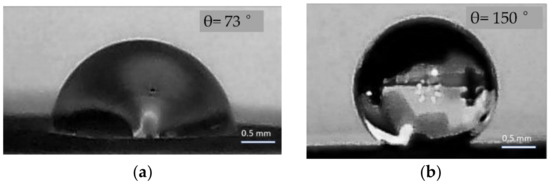 - Wenzel, R.N. Resistance of solid surfaces to wetting by water. Ind. Eng. Chem. 1936, 28, 988–994. [Google Scholar] [CrossRef]
