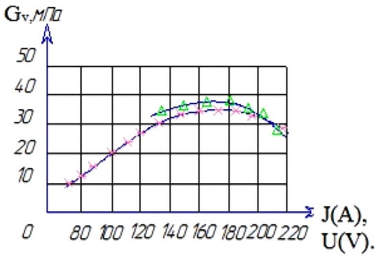 Thus, experimental studies were carried out using the method of the planning a multifactorial experiment. Formally, the purpose of the experiment was to determine the numerical values of the coefficients of regression equations. To determine the optimal conditions for the processes, we found the values of the x1, x2, … xk factors, corresponding to the extrema of goal functions or target functions (6), (7), and (8). The obtained mathematical models in the form of regression equations allowed us to determine the optimal deposition modes and the effective limits of their variation.