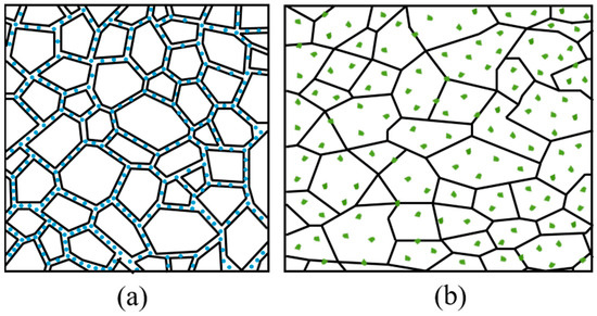 Schematic diagram of particle reinforced TiC matrix (a) pinning effect, (b) refinement effect.