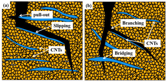 Toughening mechanism of gnts (a) pull-out and slipping, (b) bridging and crack deflection.