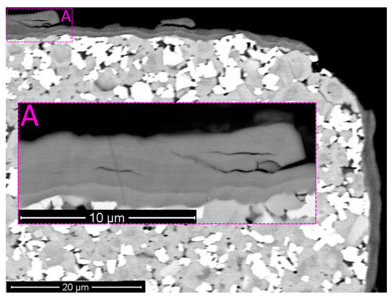 A scanning electron microscope (SEM, Oberkochen, Germany) Carl Zeiss EVO 50 was used to study the structure of the coating and the pattern of cracking. Backscatter electron imaging was used, at 20 kV, 750 pA.