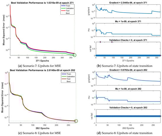 Solution of performance and state transition of proposed TLMB-NN for solving HTM-BFN model with MHD for scenarios 7 and 8.