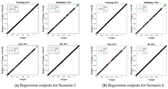 Regression performance of the proposed TLMB-NN for solving HTM-BFN model with MHD of Scenarios 3 and 4.