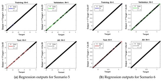 Regression performance of the proposed TLMB-NN for solving HTM-BFN model with MHD of Scenarios 5 and 6.