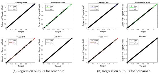 Regression performance of the proposed TLMB-NN for solving HTM-BFN model with MHD of Scenarios 7 and 8.