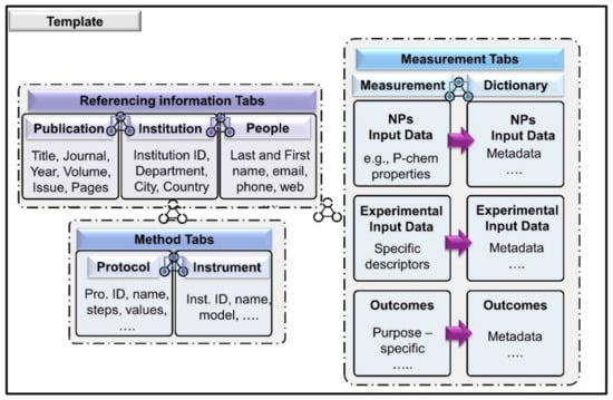 The resulting template (measurement tab’s descriptors) is semantically annotated using founded ontologies (e.g., eNanoMapper ontology, NanoParticle ontology), in compliance with the European Commission Open Data Policy and the FAIR data principles. By providing a rich metadata description of the dataset’s descriptors and annotating them improves interoperability and facilitates data interpretation. Adding complete descriptions is a crucial element of enabling modeling and machine learning purposes.