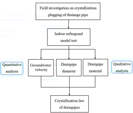 Based on the field investigation, this paper analyzes the influence of three factors on the crystallization of drain pipe: the flow rate of groundwater in the drain pipe, the diameter of drain pipe and the material of drain pipe. The main research route is shown in Figure 2.