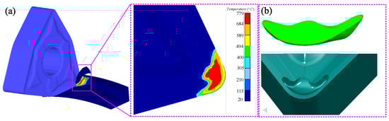 Simulation model of cutting and temperature distribution of cutting tool tip. (a) Cutting simulation model. (b) Micro groove formation process.