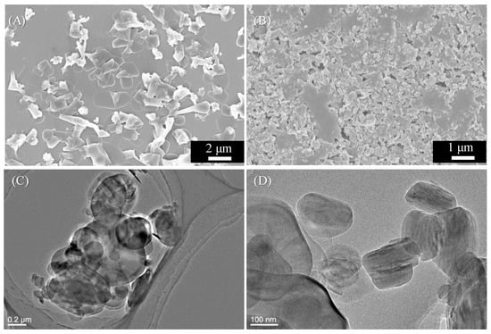 SEM and TEM images of BN (A,C) and BN570 (B,D).