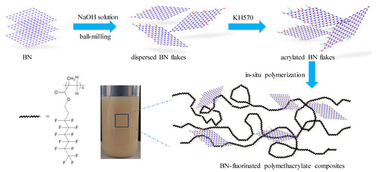 Dispersion, acrylation of BN flakes and in situ polymerization to the PFPB composite coatings.