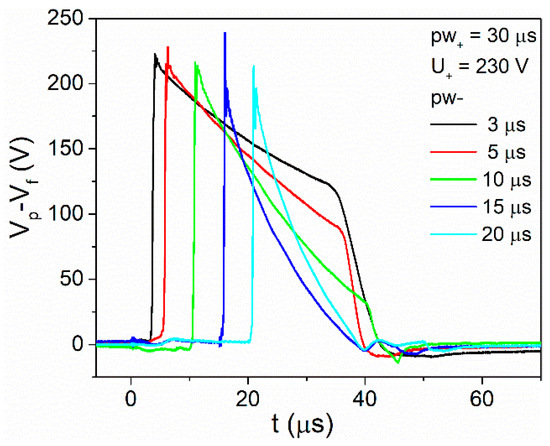 - Pajdarová, A.D.; Kozák, T.; Hubička, Z.; Čada, M.; Mareš, P.; Čapek, J. Plasma parameters in positive voltage pulses of bipolar HiPIMS discharge determined by Langmuir probe with a sub-microsecond time resolution. Plasma Sources Sci. Technol. 2020, 29, 085016. [Google Scholar] [CrossRef]