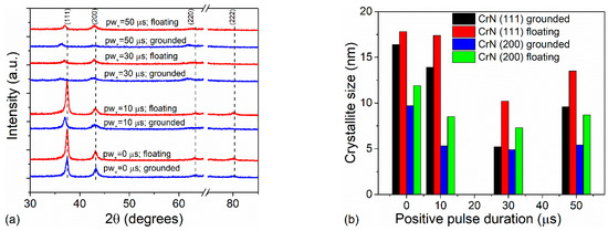 - Batková, S.; Čapek, J.; Rezek, J.; Čerstvý, R.; Zeman, P. Effect of positive pulse voltage in bipolar reactive HiPIMS on crystal structure, microstructure and mechanical properties of CrN films. Surf. Coat. Technol. 2020, 393, 125773. [Google Scholar] [CrossRef]