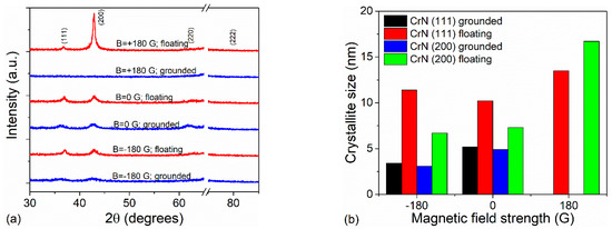 3.2. Control of CrN Thin Film Properties by Magnetic Field Configuration