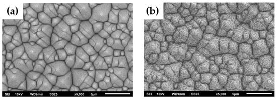 To evaluate the copper seed layer and the barrier property of the AZO layer, an annealing temperature from 300 to 800 °C was selected. The as-deposited samples were annealed in the furnace at 300–800 °C for 10 min in an Ar/H2 atmosphere. The structure was obtained using a scanning electron microscope (SEM, JEOL Ltd., Tokyo, Japan) and a scanning transmission electron microscope (STEM, JEOL Ltd. L, Tokyo, Japan). SEM and STEM were performed on JSM-6360 and a JEM-ARM200, respectively. A STEM that was equipped with an energy dispersive X-ray spectrometer (EDS, Oxford Instruments, Abingdon, UK) was used to determine the chemical composition and STEM-EDS compositional maps of all samples. A focus ion beam (FIB) resembled a scanning electron microscope (SEM) operating at 20 kV and was used for a cross-sectional view of SEM examination. The sample’s surface is protected with an about 2 µm Pt layer formed by an electron beam within the FIB chamber. The sample was then ion-milled using a focused beam of gallium ions to give a cross-section view. The tape and peel-off tests were conducted on the as-deposited sample. For the tape and peel-off tests, about 15 µm thick copper layer was deposited on the Cu/AZO/Si by electroplating. Tape tests were conducted by peeling the 3 M Scotch tape off at 180°. The peel-off tests were conducted at an angle of 180° with a constant speed of 30 mm/min.