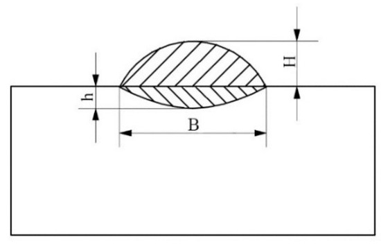 The sampling sections after surfacing are measured by Vernier calipers as shown in Figure 10. The measured depth of fusion H = 0.79 mm, width of fusion B = 10.08 mm and reinforcement H = 2.24 mm. Due to the large size of the surfacing model, in order to improve the calculation efficiency and accuracy, the grid form of alternate density is adopted, that is, the welding part adopts a denser grid, and the part far away from the weld adopts a thicker grid. The size of the substrate is the same as that of the base metal; use visual mesh module finite element model.