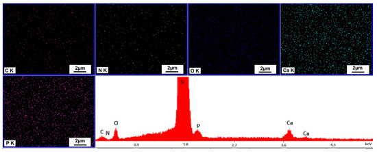 Elemental mapping and typical EDX spectrum of CS–HAp coatings obtained at p = 1.2 × 10−2 mbar.