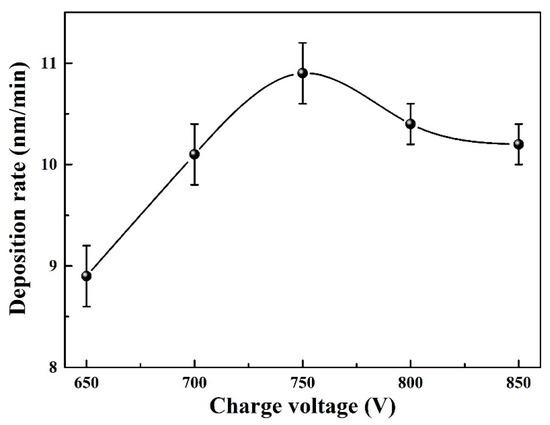 Deposition rate of Mo–Cu–V–N coatings as a function of charge voltage.