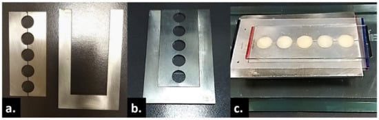 (a,b) Stainless-steel mold used for preparation of specimens; (c) composite specimens being prepared using the stainless-steel mold.