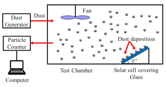 Experimental schematic of dust deposition on solar cell covering glass. Reprinted with permission from [111]; Copyright 2019 Elsevier.