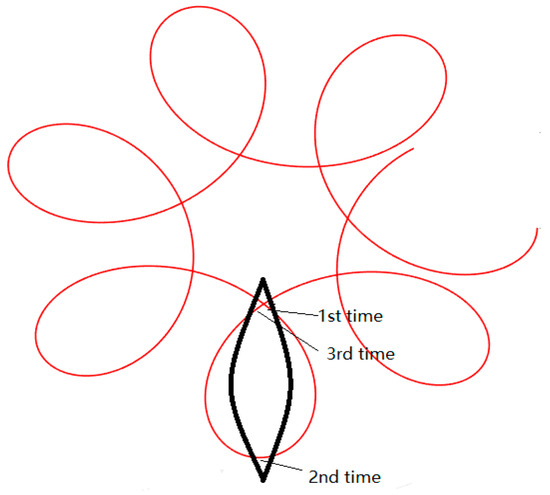 Figure 4. In a standard rotation, the revolution and rotation are in the same rotation direction as shown by the red line, while the rotation direction of revolution and rotation are opposite in the counter PRS, as shown by the black line.