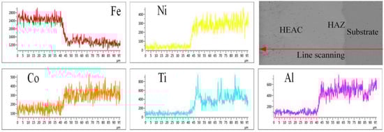 The EDS line scan pattern of the FeCoNiTiAl coating section.
